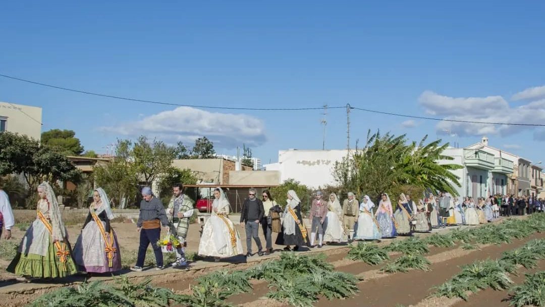 El ambiente se llenó con el sonido del «tabal i la dolçaina», y con alegres pasodobles interpretados por la banda que cerraba la comitiva, junto a la Corte y la Reina de l’Horta de Valencia, Merche Esplugues, el presidente de la Asociación Cultural l’Horta, Manuel García, y una destacada representación de autoridades del Ayuntamiento de Valencia y otras localidades.